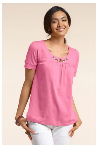 Sweet knit top has a cute bead-detailed neckline. Imported. Soft, comfy cotton knit top's perfect with casual pants Short, banded sleeves Bead detail at scoop neckline Soft cotton Machine wash Misses 25 long- Soft, comfy cotton knit top's perfect with casual pants