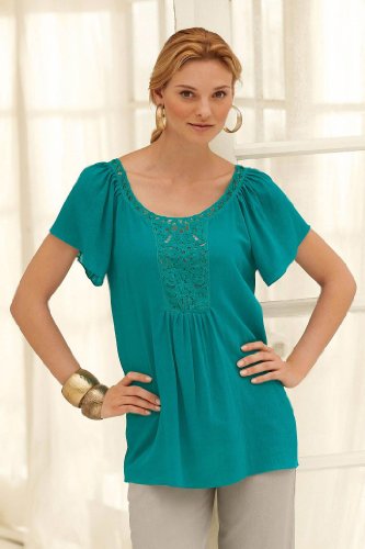 Fabulous, flowy top combines a comfy fit with lots of pretty details. Imported. Flowy crinkle voile top with soutache trim along neckline Gorgeous cutout soutache front detail Short flutter sleeves Cotton crinkle voile; Machine wash Misses 23 long ...